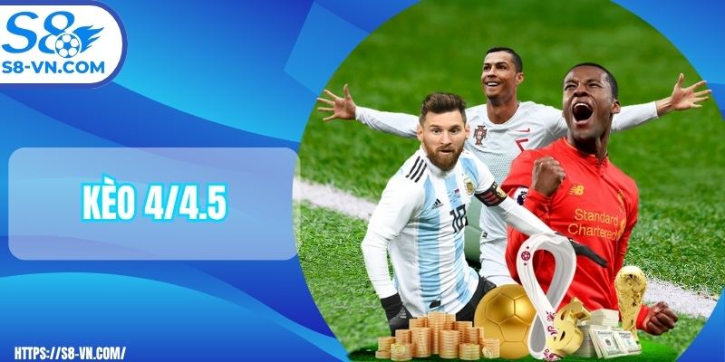 Kèo 4/4.5 nghĩa là đội cửa trên phải thắng từ 5 bàn trở lên thì người theo cửa này mới ăn trọn. Nếu đội mạnh chỉ thắng đúng 4 bàn, cửa trên sẽ mất nửa tiền còn cửa dưới lại hưởng lợi. Trường hợp thắng ít hơn 4 bàn hoặc bị cầm hòa, hội viên theo cửa trên sẽ thua sạch, dưới ôm trọn phần thắng.